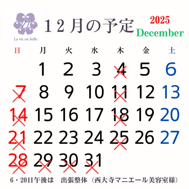 2025年 1月 予定変更の場合はHPのトップページに掲載いたします。